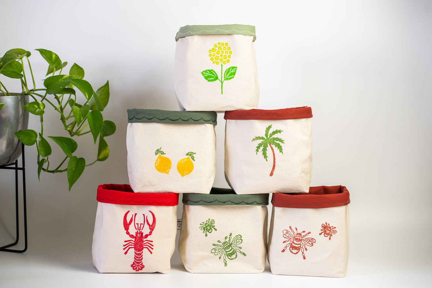 Foldable, decorative fabric baskets perfect for bread, fruit, and stylish home organisation.