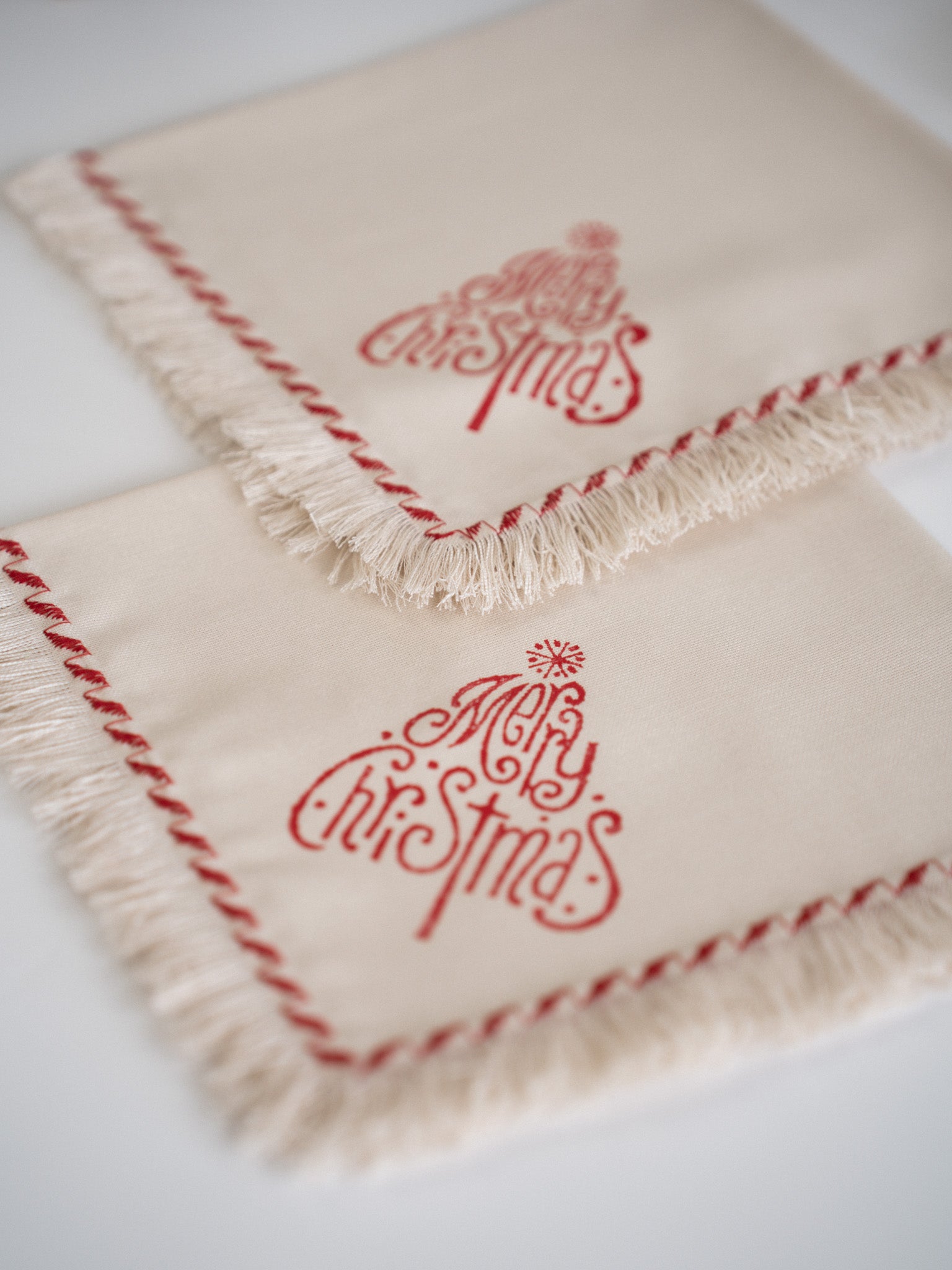 Bring festive charm and artisanal beauty to your holiday table with our cotton block-printed fringed napkins.