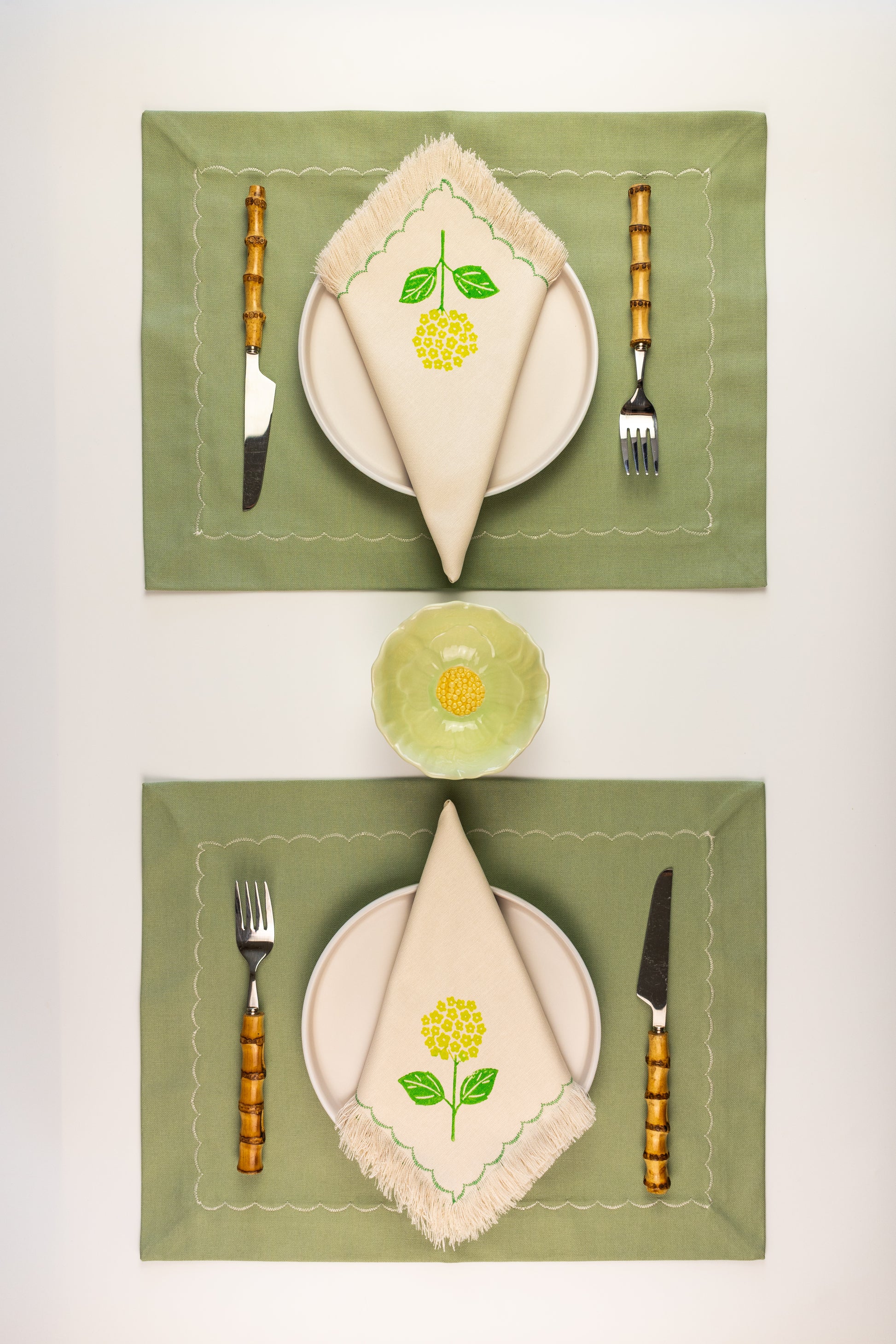 Block Printed Fringed Napkins - Hydrangea Set of 2