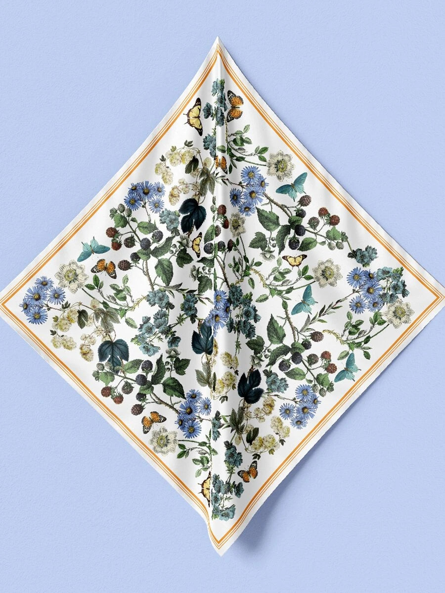 The silk square fabric can be easily folded and knotted beautifully to wrap a gift and can be also used as a bandana or a cute scarf.