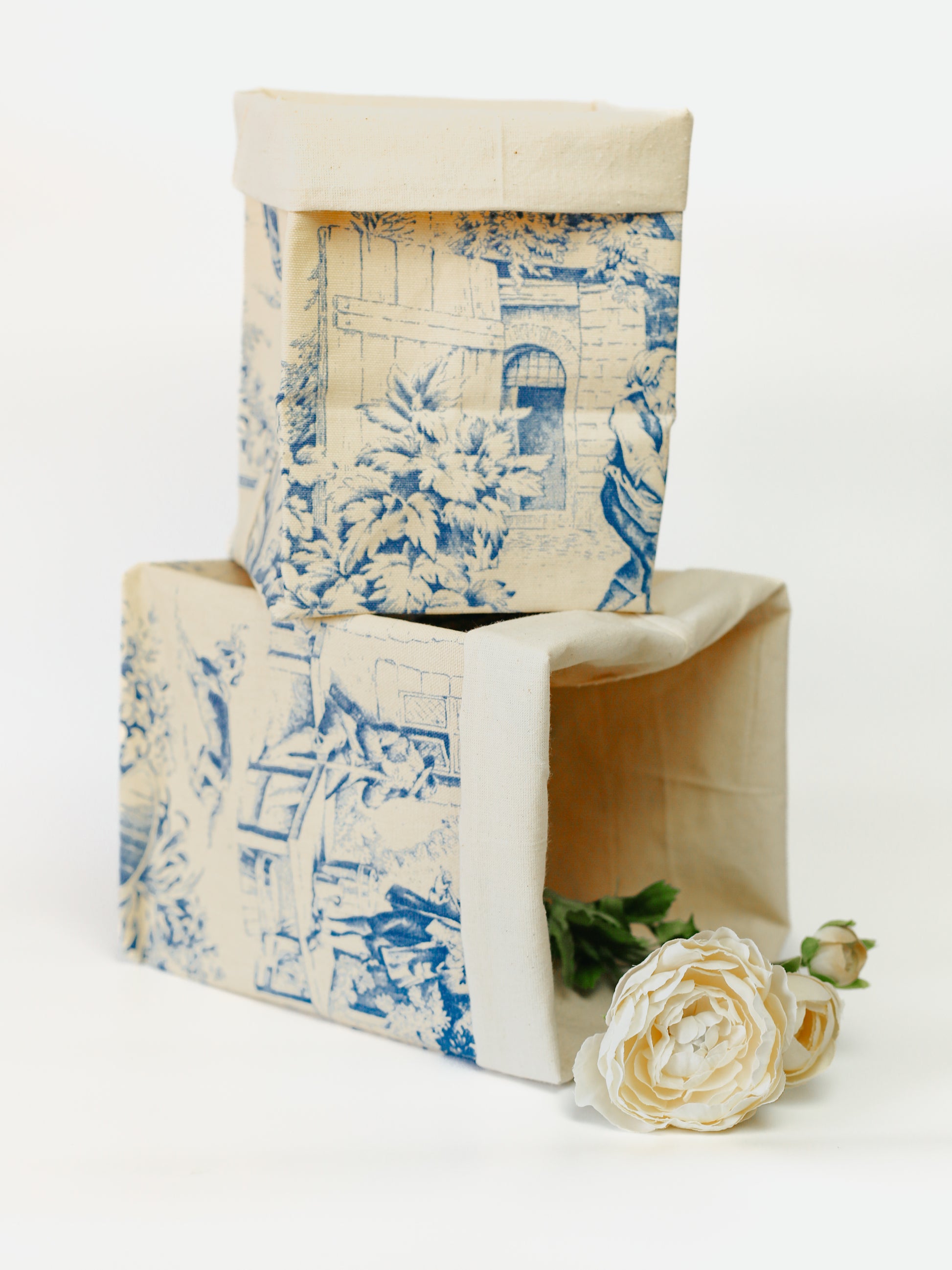Blue Toile de Jouy Fabric Basket ( Set of 2 )