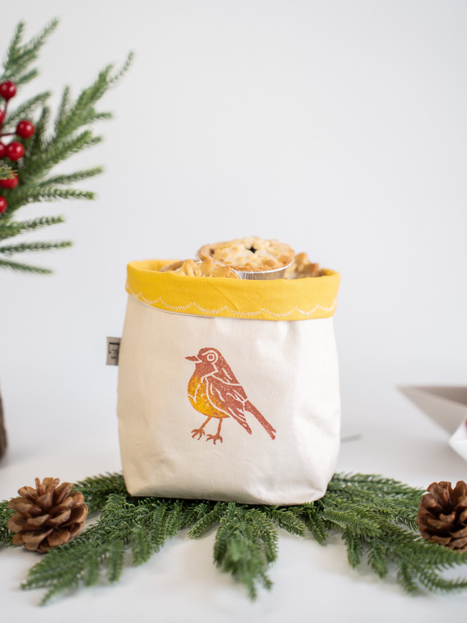 A beautiful blend of function and festive charm, our block-printed fabric basket is the perfect finishing touch for your holiday table.
